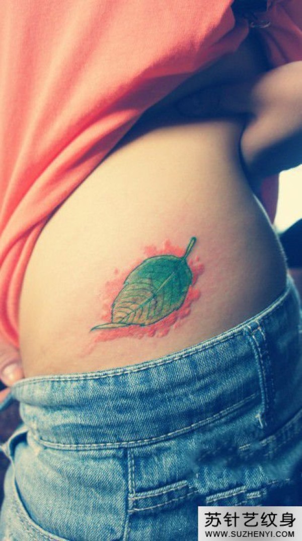 绿色树叶腰部纹身_植物纹身图案大全_纹身图吧