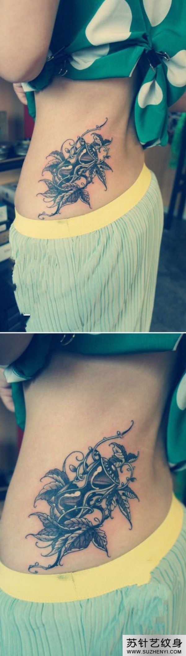 花藤沙漏腰部纹身_植物纹身图案大全_纹身图吧