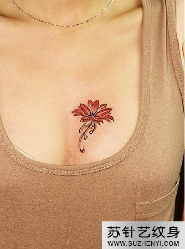 胸部时尚花朵纹身_植物纹身图案大全_纹身图吧