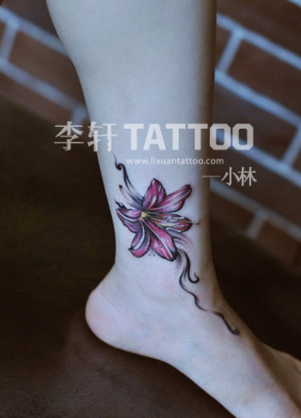 小林作品彩色脚踝花朵纹身图案_植物纹身图案大全_纹身图吧