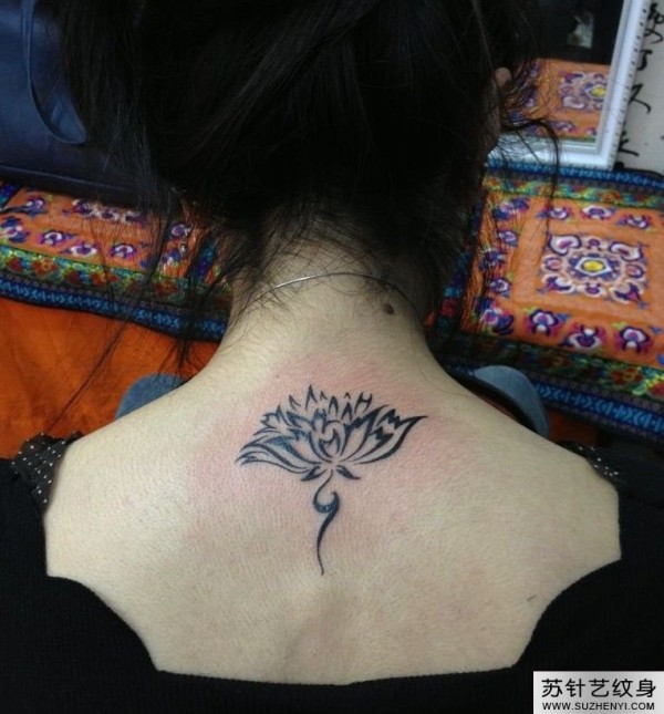 后颈莲花刺青_植物纹身图案大全_纹身图吧