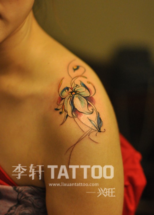 兴旺作品肩膀彩色花朵纹身图案_植物纹身图案大全_纹身图吧