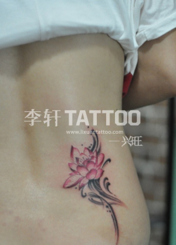 兴旺纹身女孩彩色荷花纹身图片_植物纹身图案大全_纹身图吧