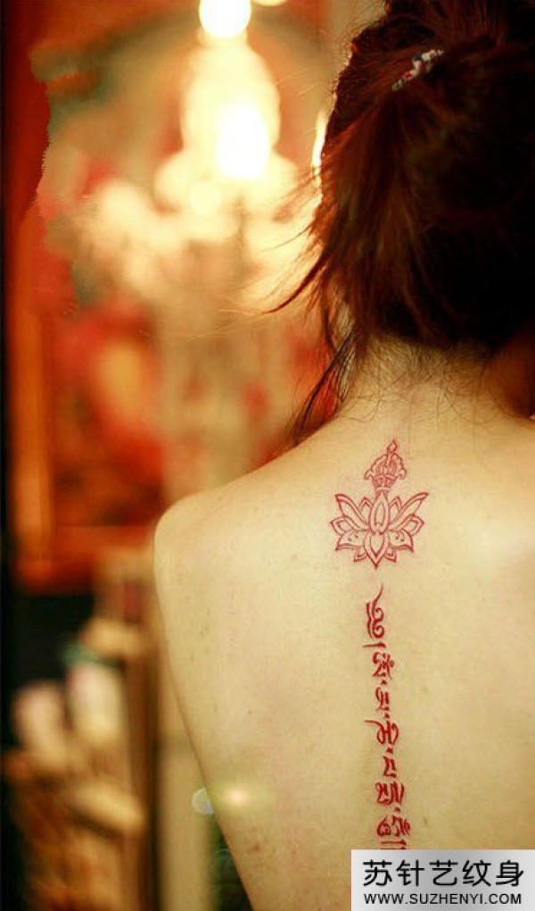 莲花座与经文纹身_植物纹身图案大全_纹身图吧