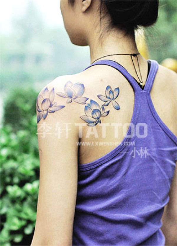 李轩纹身店蓝色荷花纹身_植物纹身图案大全_纹身图吧
