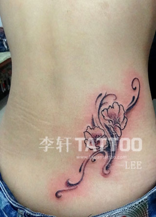 李轩作品花朵纹身后背腰部刺青_植物纹身图案大全_纹身图吧