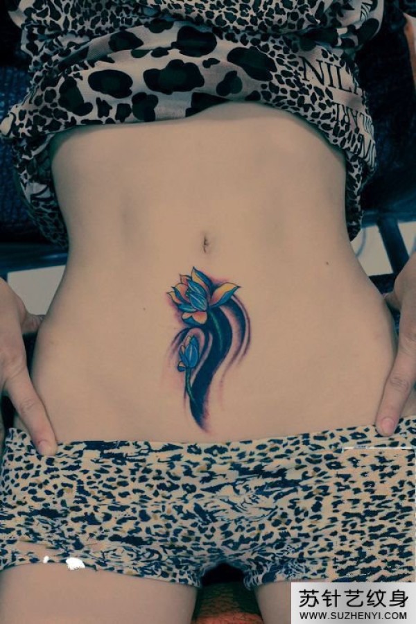 腹部性感莲花纹身_植物纹身图案大全_纹身图吧