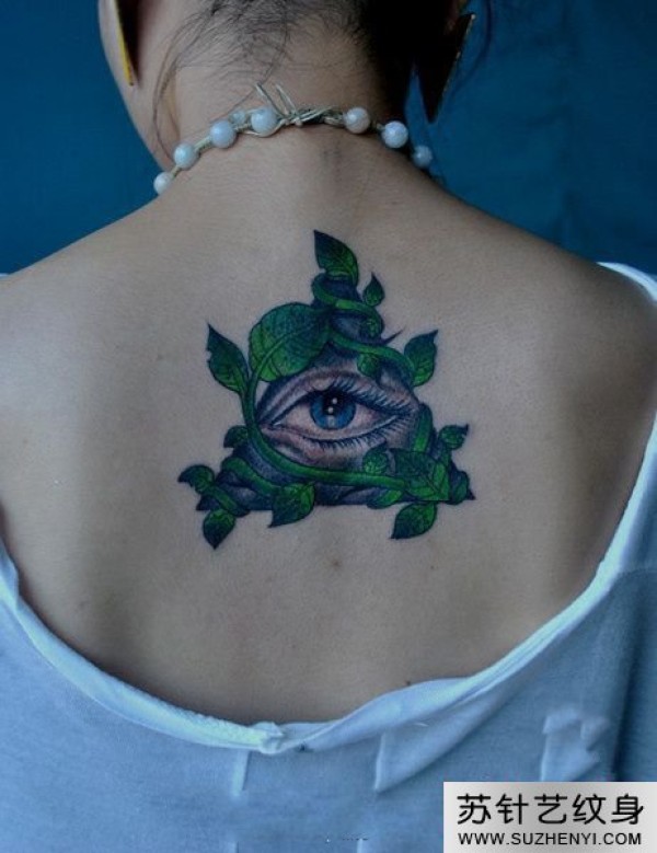 创意精美的树叶三角眼后背纹身_植物纹身图案大全_纹身图吧