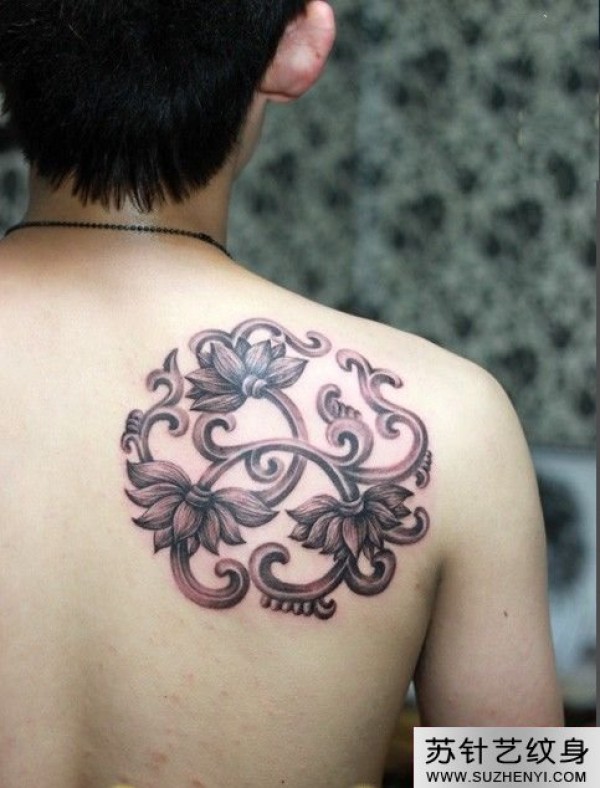 背上创意时尚宝相莲花刺青_植物纹身图案大全_纹身图吧