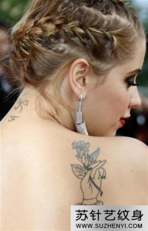 时尚最新美女背部手持花朵纹身_植物纹身图案大全_纹身图吧