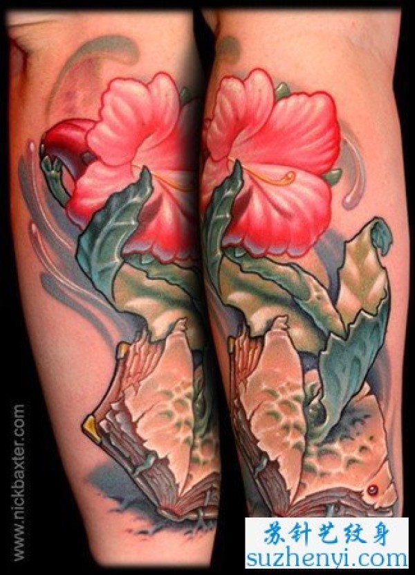 经典的书花纹身_植物纹身图案大全_纹身图吧