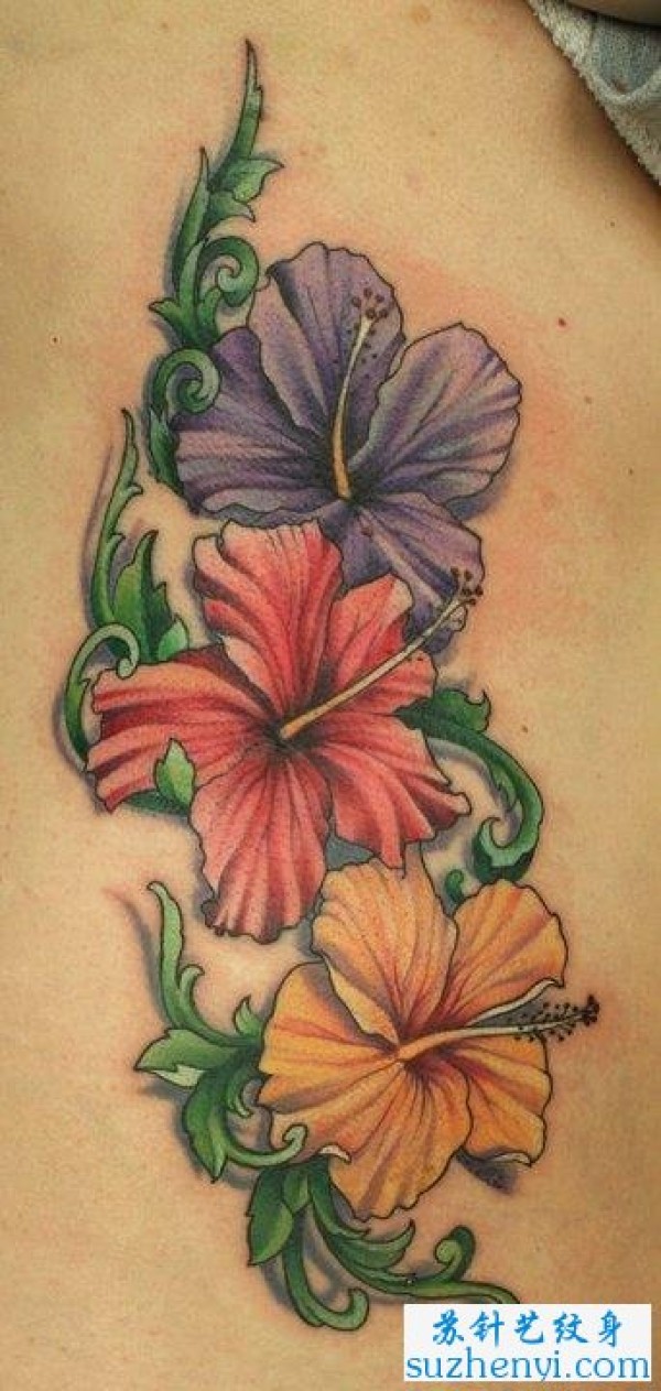 彩色花卉文身图案_植物纹身图案大全_纹身图吧