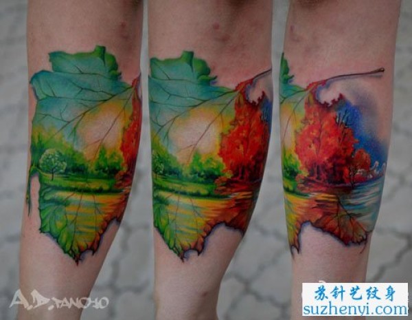 超酷的树叶与风景纹身_植物纹身图案大全_纹身图吧