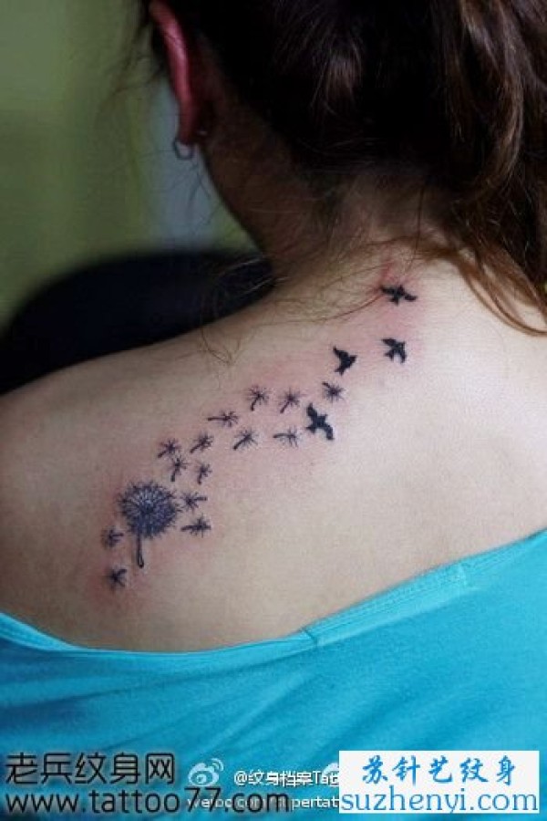 蒲公英和小鸟纹身_植物纹身图案大全_纹身图吧