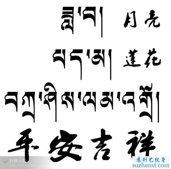 藏文月亮莲花平安吉祥纹身图案_植物纹身图案大全_纹身图吧