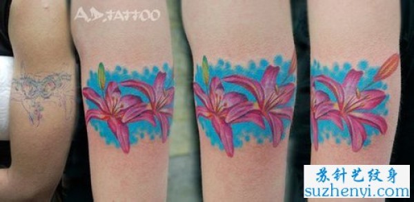 唯美漂亮的彩色百合花纹身_植物纹身图案大全_纹身图吧