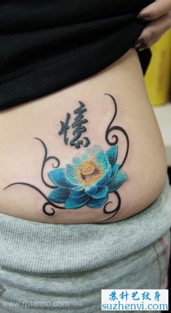 淡雅的彩色莲花纹身_植物纹身图案大全_纹身图吧