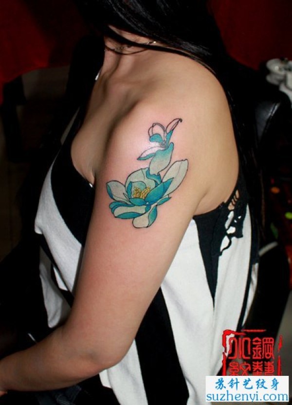淡雅的莲花纹身_植物纹身图案大全_纹身图吧