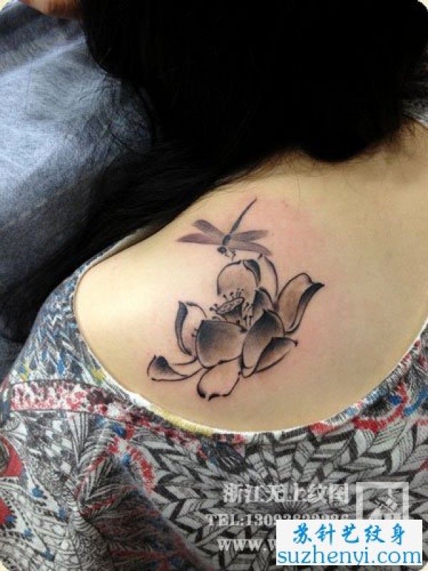 水墨画莲花与蜻蜓纹身_植物纹身图案大全_纹身图吧