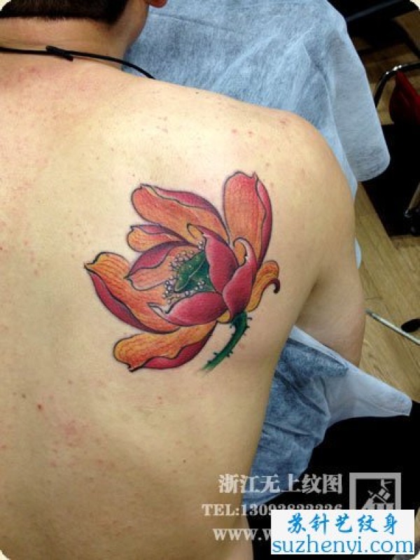 漂亮的彩色莲花纹身_植物纹身图案大全_纹身图吧