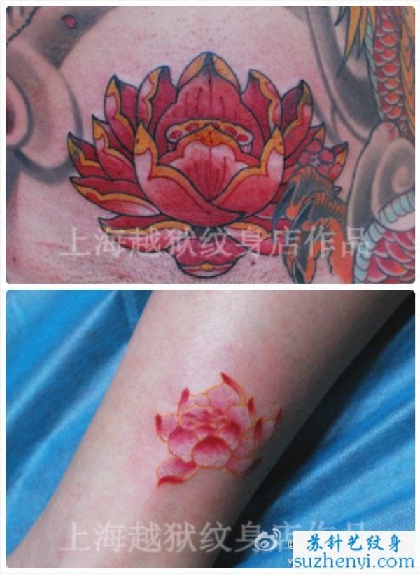 精致的彩色莲花纹身_植物纹身图案大全_纹身图吧