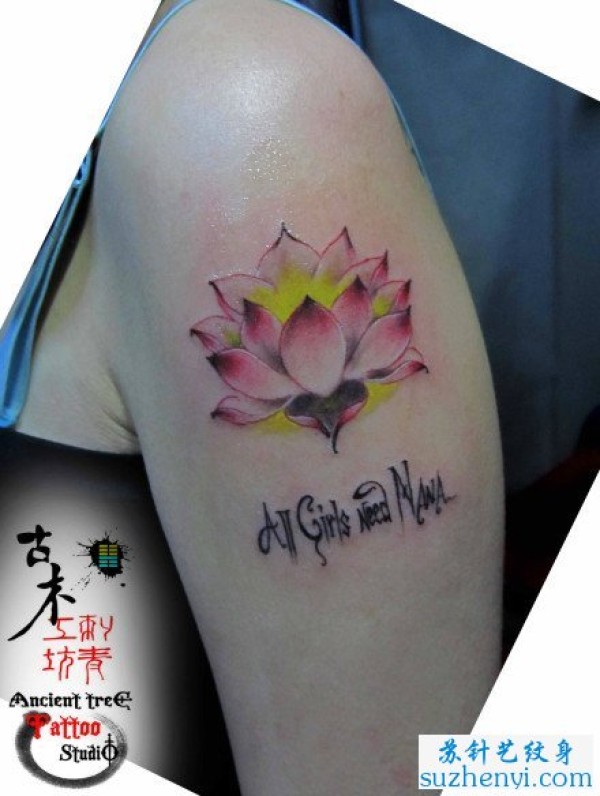 时尚漂亮的彩色莲花纹身_植物纹身图案大全_纹身图吧