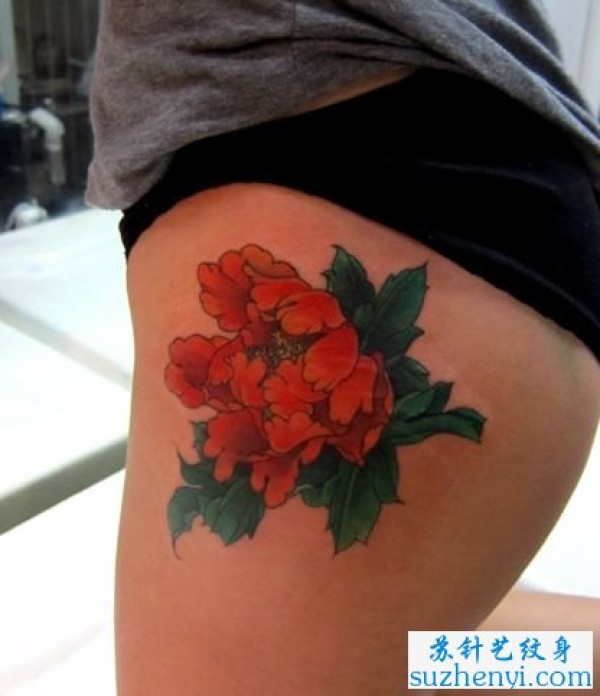 臀部彩色牡丹花纹身_植物纹身图案大全_纹身图吧