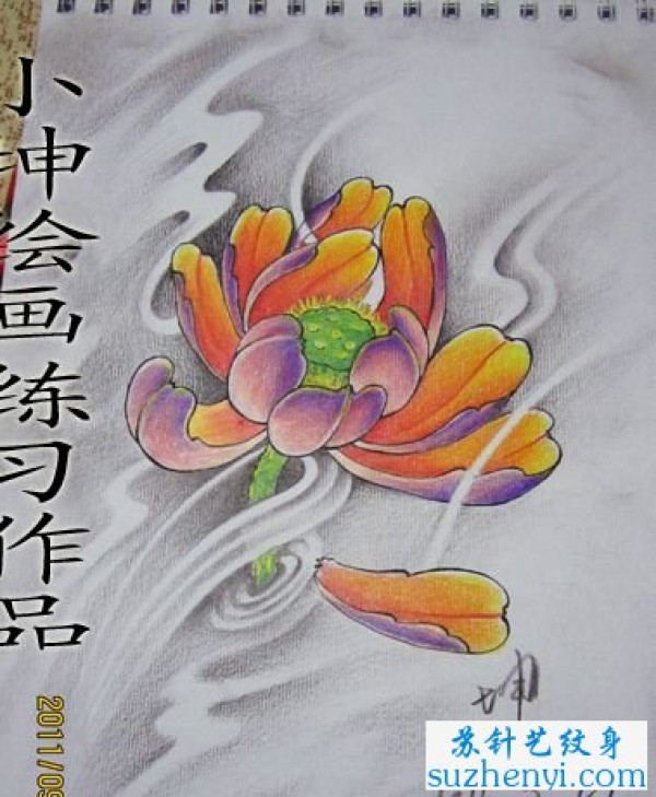 好看的彩色莲花纹身_植物纹身图案大全_纹身图吧