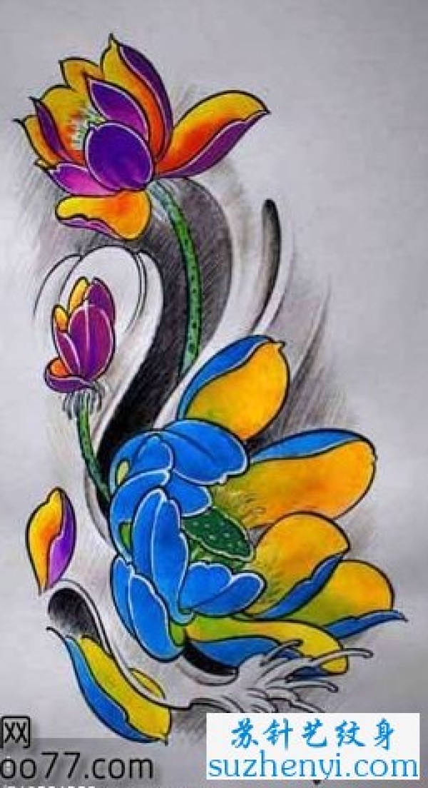 艳丽的彩色莲花纹身_植物纹身图案大全_纹身图吧