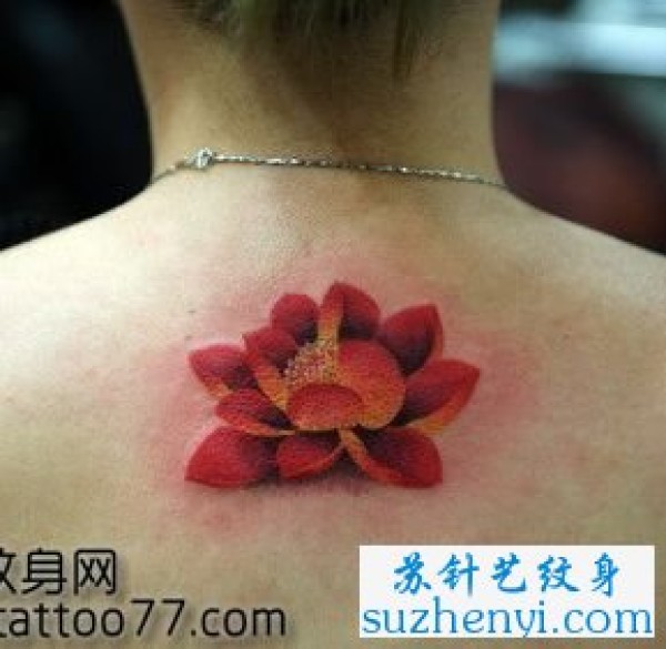 颈部彩色莲花纹身_植物纹身图案大全_纹身图吧