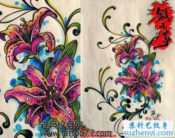 彩色的百合花纹身_植物纹身图案大全_纹身图吧