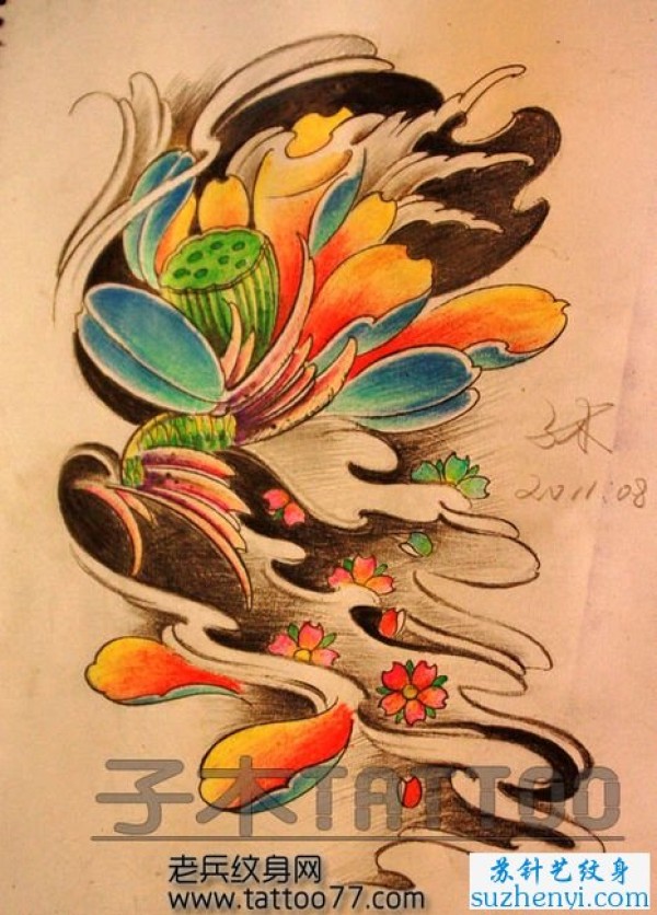 时尚华丽的莲花纹身_植物纹身图案大全_纹身图吧