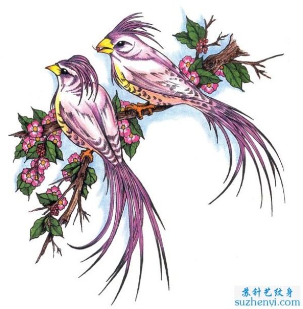 喜鹊樱花纹身_植物纹身图案大全_纹身图吧
