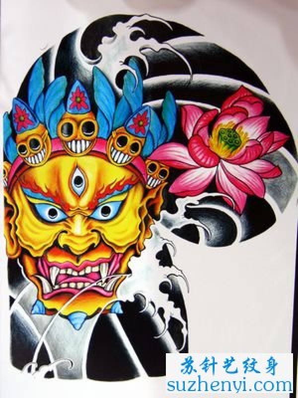半胛金刚头像莲花纹身_植物纹身图案大全_纹身图吧