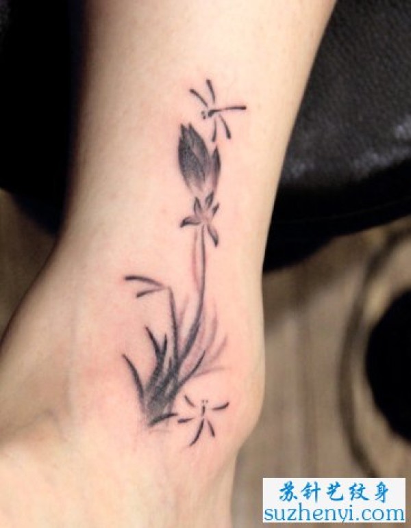 水墨荷花纹身图案_植物纹身图案大全_纹身图吧