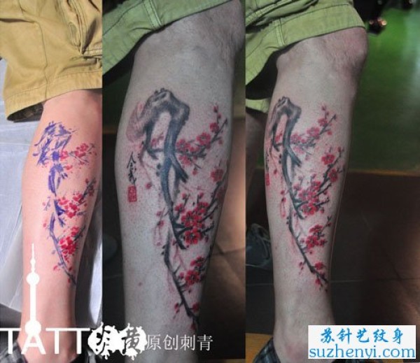 水墨梅花纹身_植物纹身图案大全_纹身图吧