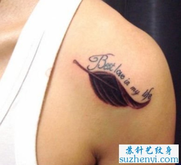 肩部树叶文字纹身图案纹身_植物纹身图案大全_纹身图吧