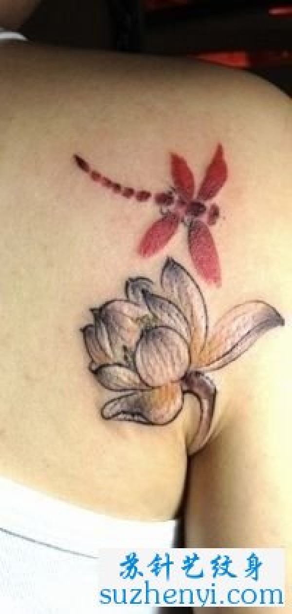 水墨画风格蜻蜓莲花纹身_植物纹身图案大全_纹身图吧