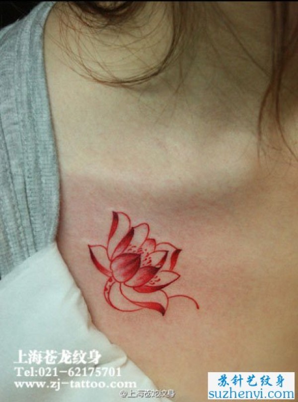 前胸彩色莲花纹身_植物纹身图案大全_纹身图吧