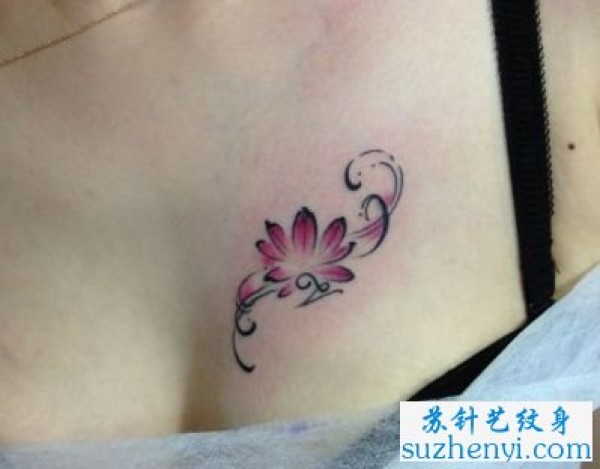 胸部莲花藤蔓纹身_植物纹身图案大全_纹身图吧
