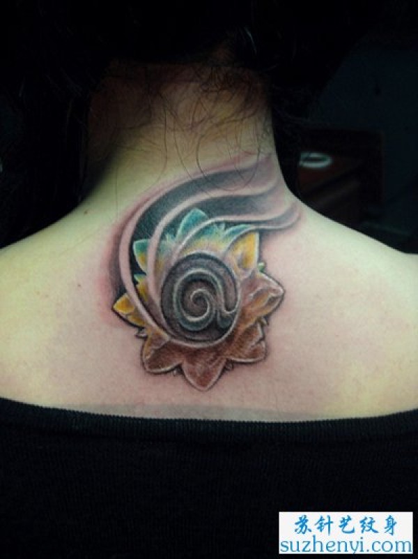 后颈部莲花纹身_植物纹身图案大全_纹身图吧