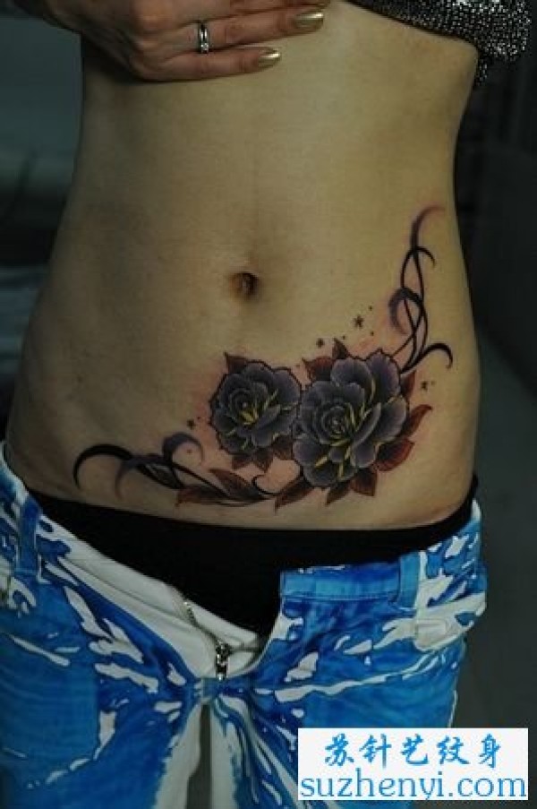 腹部花卉藤蔓纹身_植物纹身图案大全_纹身图吧