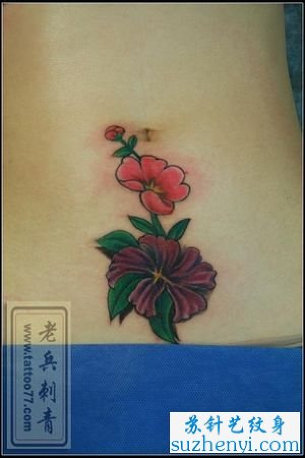 腹部彩色花卉纹身_植物纹身图案大全_纹身图吧