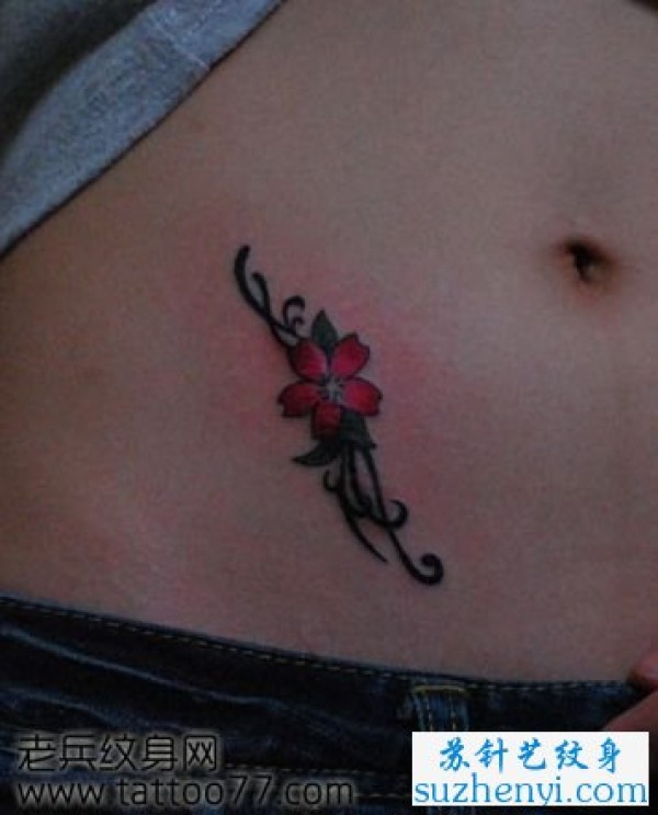 腹部樱花纹身_植物纹身图案大全_纹身图吧