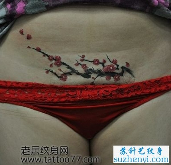 腹部彩色梅花纹身_植物纹身图案大全_纹身图吧