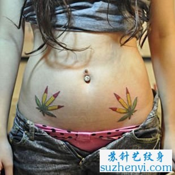 腹部大麻叶子纹身_植物纹身图案大全_纹身图吧