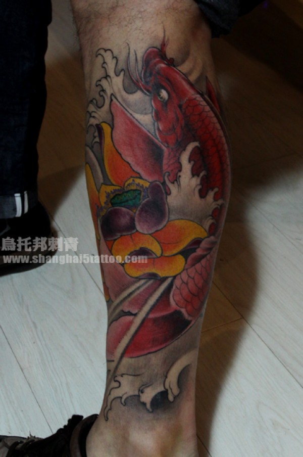 鱼和荷花3_植物纹身图案大全_纹身图吧