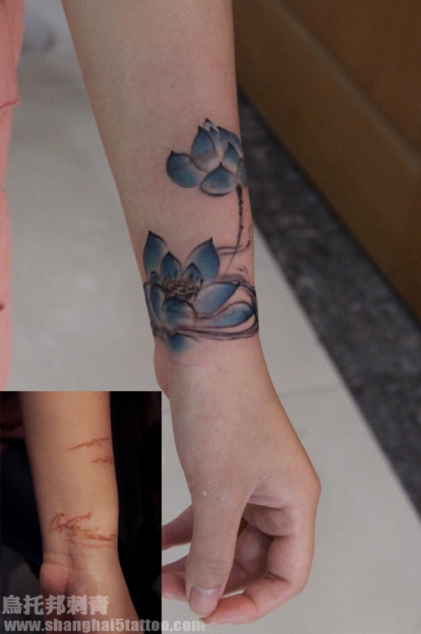 莲花(遮盖)_植物纹身图案大全_纹身图吧