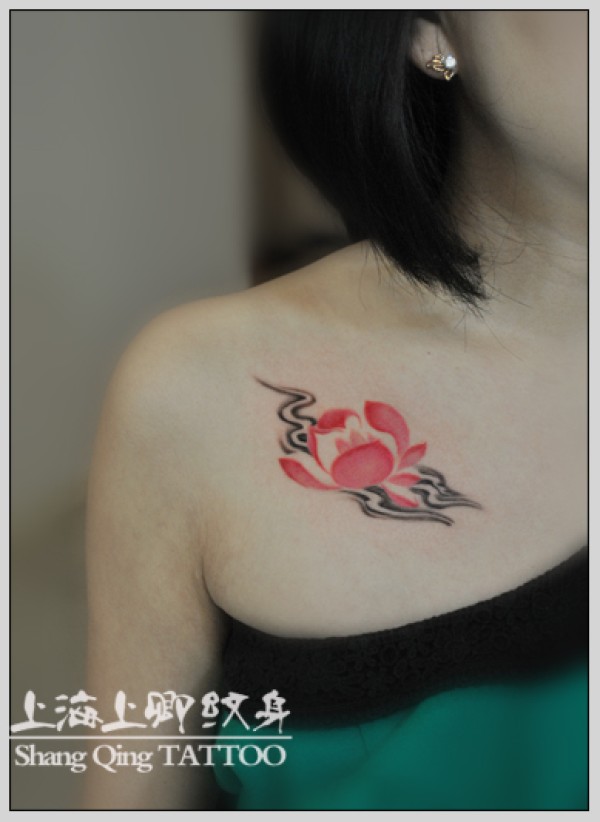 上海专业纹身店上卿纹身作品水墨莲花_植物纹身图案大全_纹身图吧