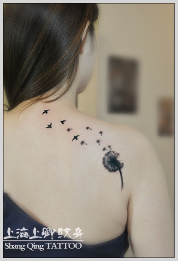 蒲公英与飞鸟_植物纹身图案大全_纹身图吧